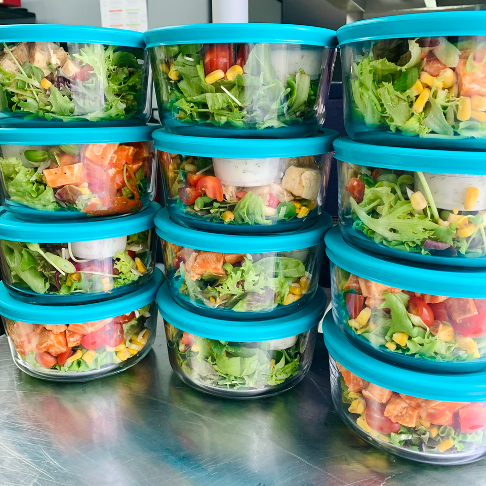 Join our exclusive meal prep service. Our meals are served in non-toxic, returnable glass containers, so a fully refundable $125 glassware deposit is required to join us.